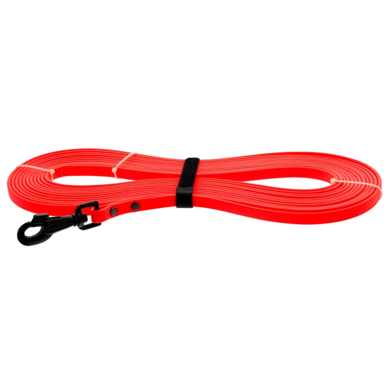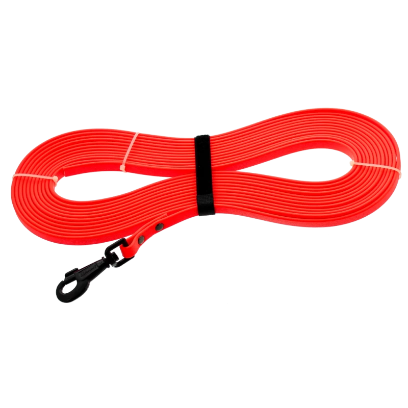Elle vous permet de donner de la distance à votre chien tout en ayant un contrôle sur lui. Possibilité d’ajouter des accouples. Longe sans poignée. Coloris : Orange vif. Largeur de la sangle : 13 mm. Poids : 500 g