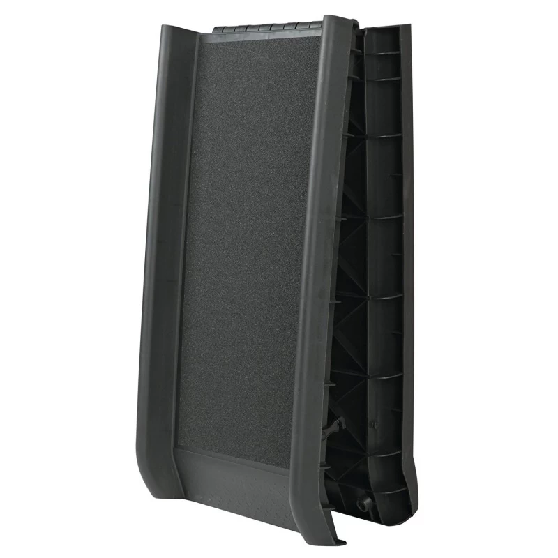 Conseils : Tout chien hésitant ou anxieux à l’approche de ce type d’équipement doit bien sûr être surveillé attentivement. Cependant, avec une mise en confiance et un peu d’éducation au clicker en amont (en marchant tout d’abord avec lui le long de la rampe alors qu’elle est simplement déployée sur le sol, puis en augmentant progressivement les critères), il devrait rapidement apprendre à se sentir plus à l’aise sur la rampe.